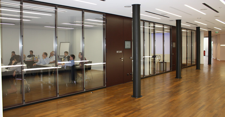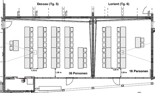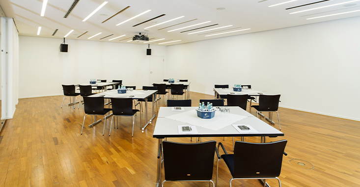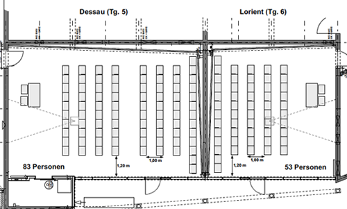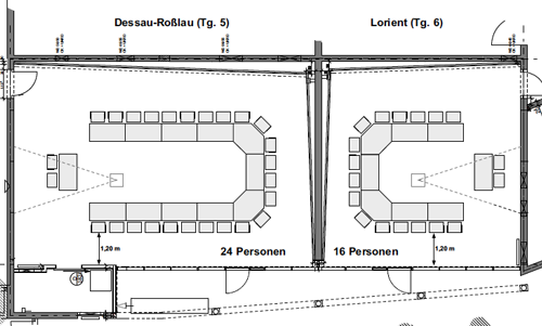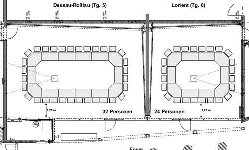 Die unmittelbare Nachbarschaft zu den Sälen und Ausstellungsflächen des Oberen Foyers macht die Tagungsräume Dessau-Roßlau und Lorient für viele Anlässe besonders interessant. Dank großer Glasfronten wirken beide Räume hell und einladend. Zu ihnen gehört ein kleines Foyer, das sich dank eigener Teeküche bestens für die Pausengastronomie im Seminarbereich eignet. Die Tagungstechnik entspricht höchsten Standards und lässt keine Wünsche offen.