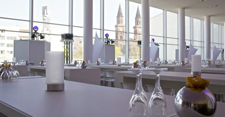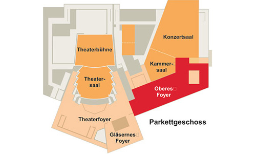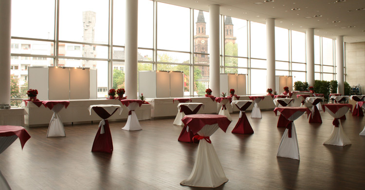 Großzügig und lichtdurchflutet präsentiert sich das neu gestaltete Obere Foyer - ideale Voraussetzungen für Messen und Ausstellungen oder die anspruchsvolle gastronomische Betreuung Ihrer Veranstaltungen. Darüber hinaus bietet das Obere Foyer den glanzvollen Rahmen für repräsentative gesellschaftliche und kulturelle Veranstaltungen. Der Phantasie sind keine Grenzen gesetzt.
