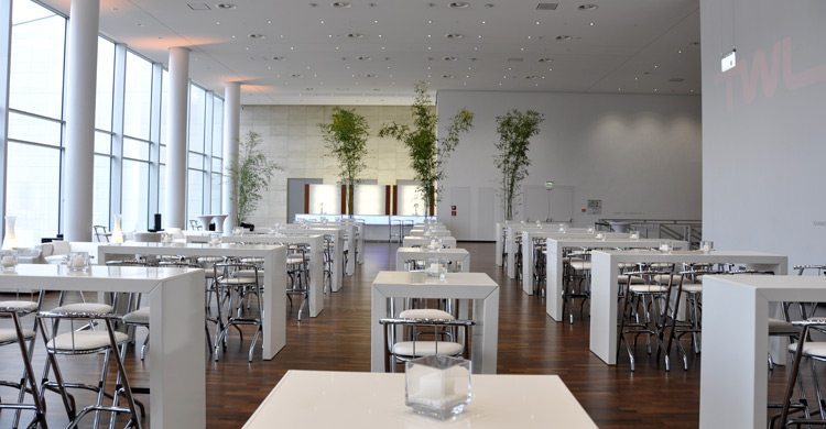 Auch die technische Ausstattung kann sich sehen lassen. Zahlreiche Bodentanks ermöglichen die flächendeckende Versorgung mit Strom, Audio-, Video- und Datenleitungen.