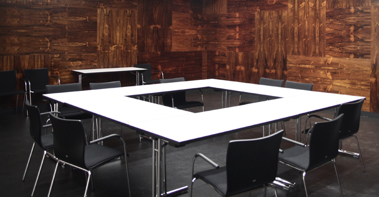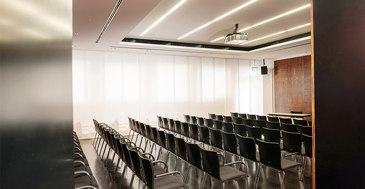 Zwischen den beiden Räumen wurde ein Veranstalterbüro geschaffen, das hinsichtlich seiner technischen Ausstattung keine Wünsche offen lässt. Die vorgelagerte Foyerfläche bietet den idealen Rahmen für die Pausengastronomie oder begleitende Ausstellungen.